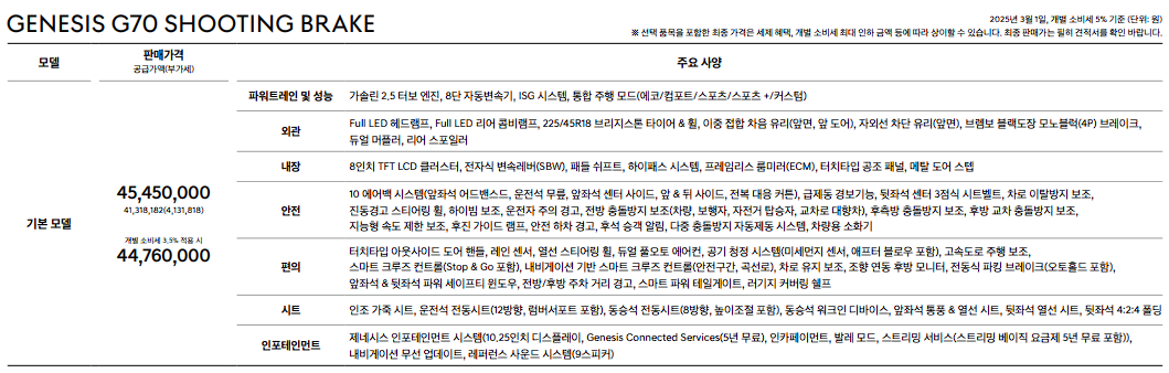 g70 슈팅브레이크 가격은 45,450,000원입니다.