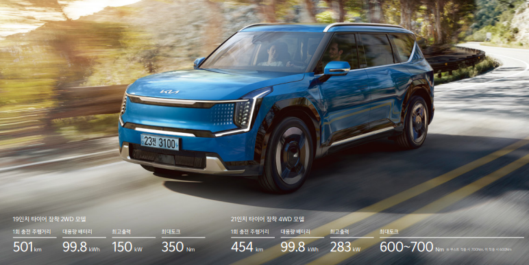 전기차 보조금을 받을 수 있는 ev9입니다.
