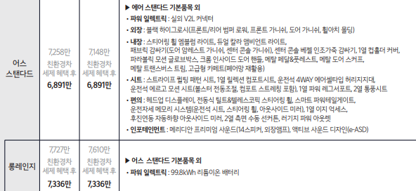 2025 전기차 보조금 차종별 국고보조금 지원금액