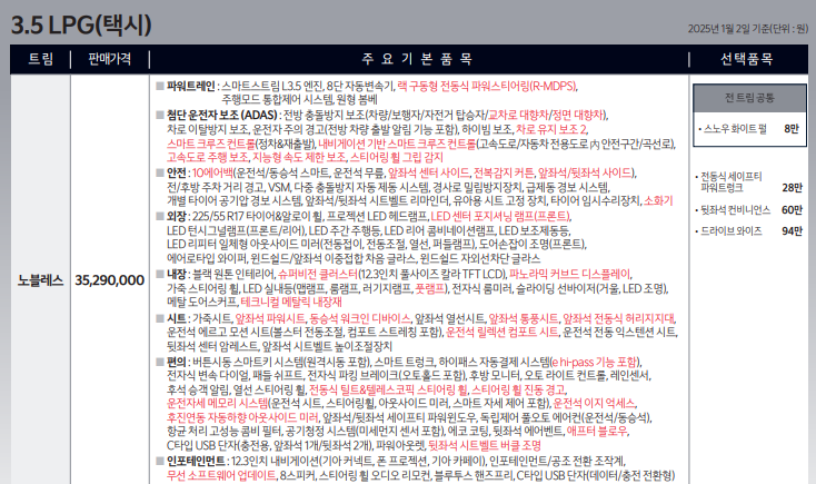 k8 택시는 노블레스 한가지 모델만을 판매합니다.