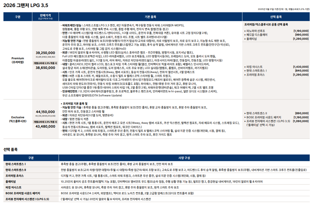 2026 그랜저 lpg 3.5 제원