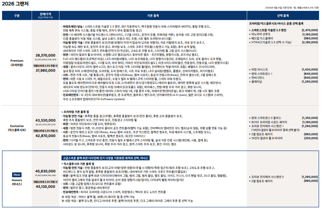 2026 그랜저 프리미엄 가격