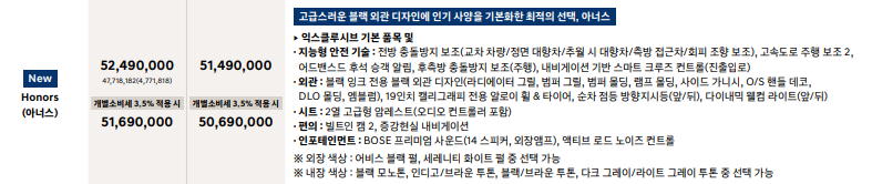 그랜저 하이브리드 아너스 honors 트림 추가로