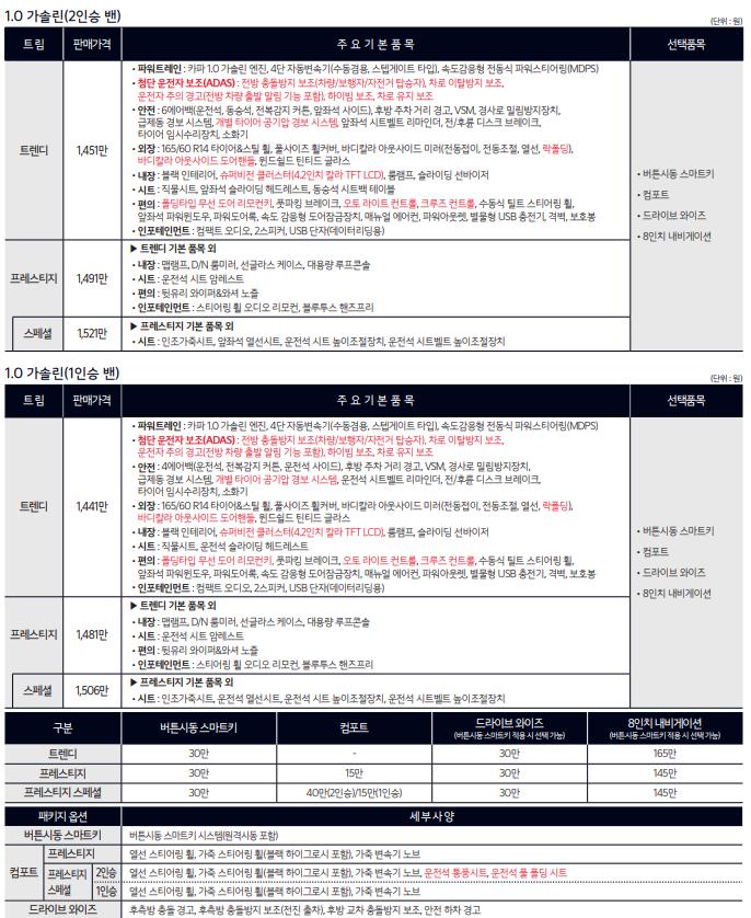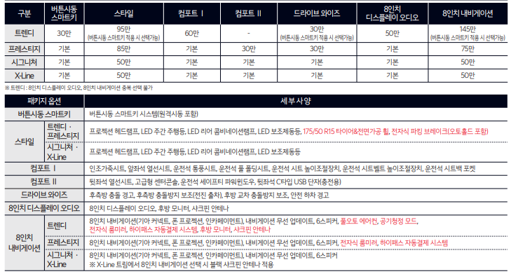 트림별 옵션과 구성 품목을 변경하며 약간의 가격인상