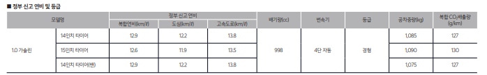 1.0 가솔린 자연흡기 엔진은 레이 1세대부터 그대로 이어지고 있습니다.