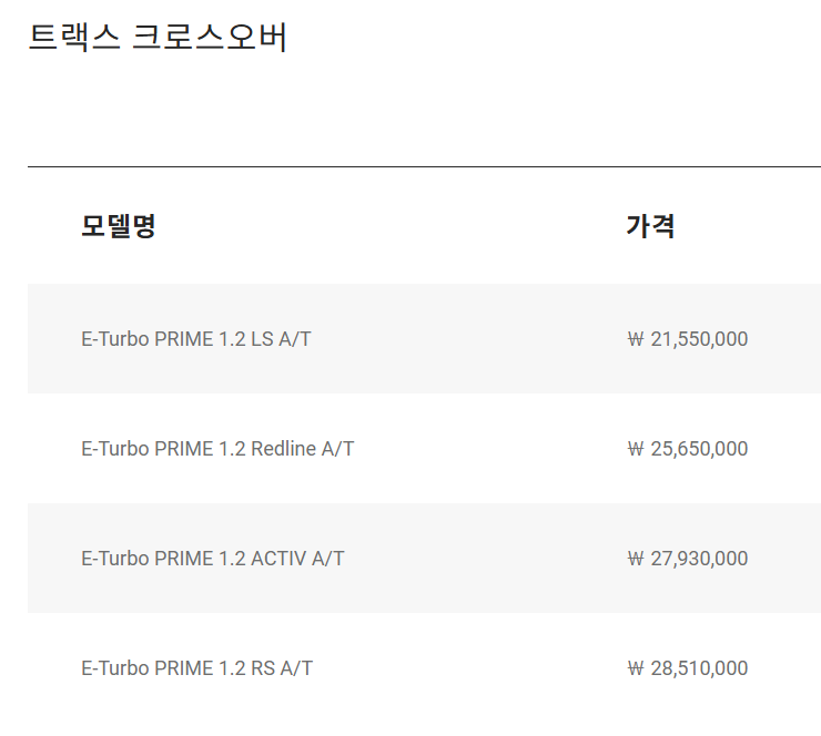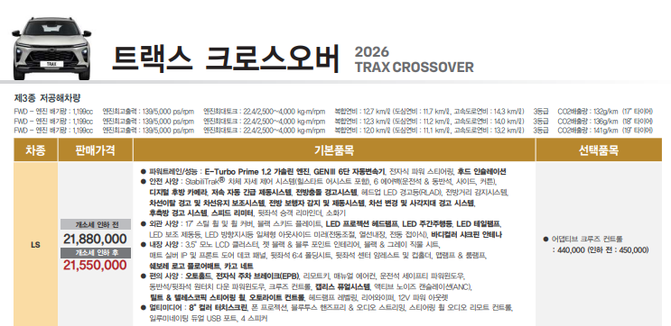 2026 쉐보레 트랙스 크로스오버 가격표 카탈로그