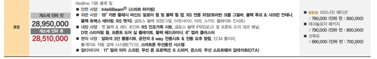 다음 트림 레드라인과는 4백만원 차이가 발생하며 레드라인은 2,565만 원으로 깡통 트림보다 400만 원가량 비쌉니다.
