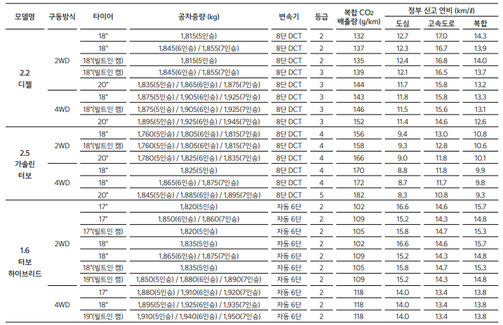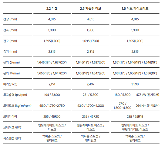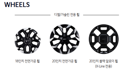 가솔린, 디젤은 18인치 휠을 기본으로 20인치 휠까지 선택 가능
