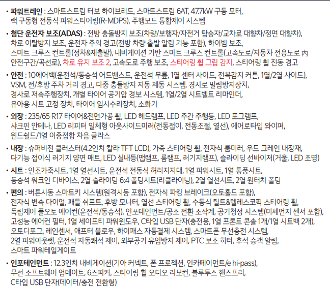 물론, 중고로 팔거나 많은 주행거리를 고려하면 하이브리드 구매가 효율적이긴 합니다.