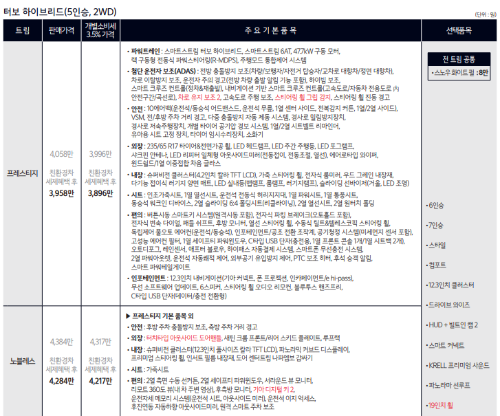 2026 쏘렌토 하이브리드 가격