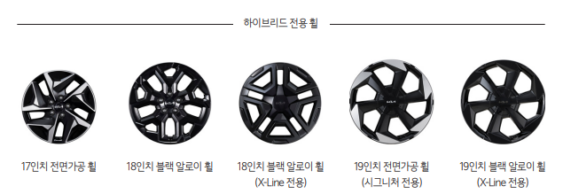 하이브리드 전용 휠은 17인치 전면가공휠을 기본으로 제공하며 19인치 블랙 휠 까지 제공하고 있습니다.