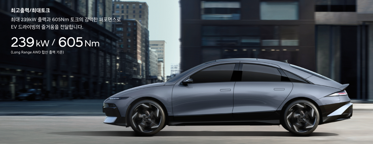 아이오닉 6 토크는 239kw/ 605nm으로
