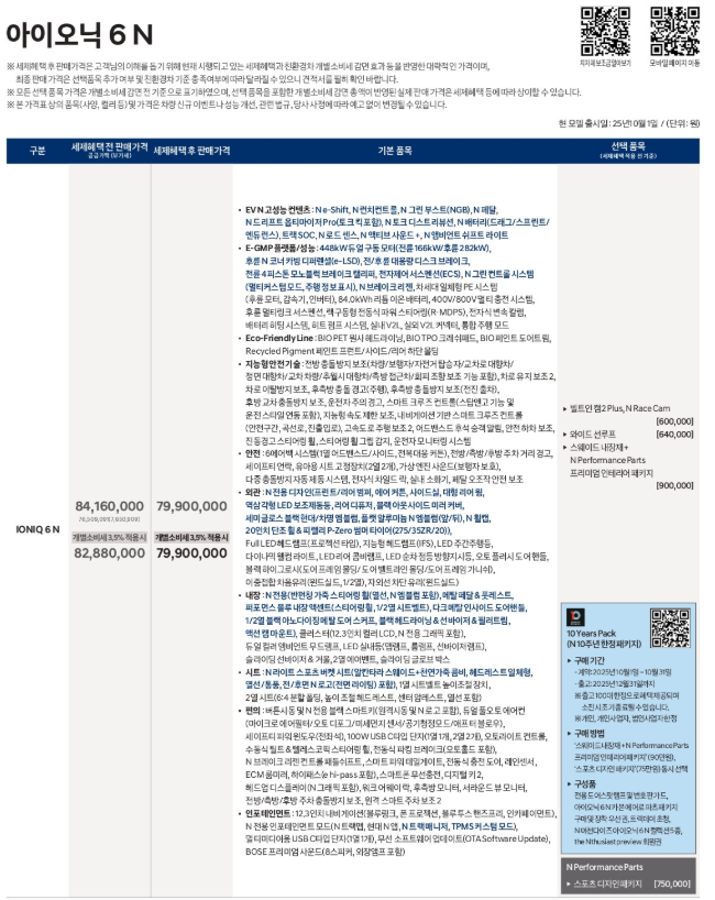 8천만 원이 넘는 아이오닉 6n 가격입니다.