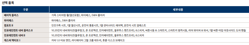 • 베이직 플러스(열선 가죽핸들, 하이패스) 32만 원