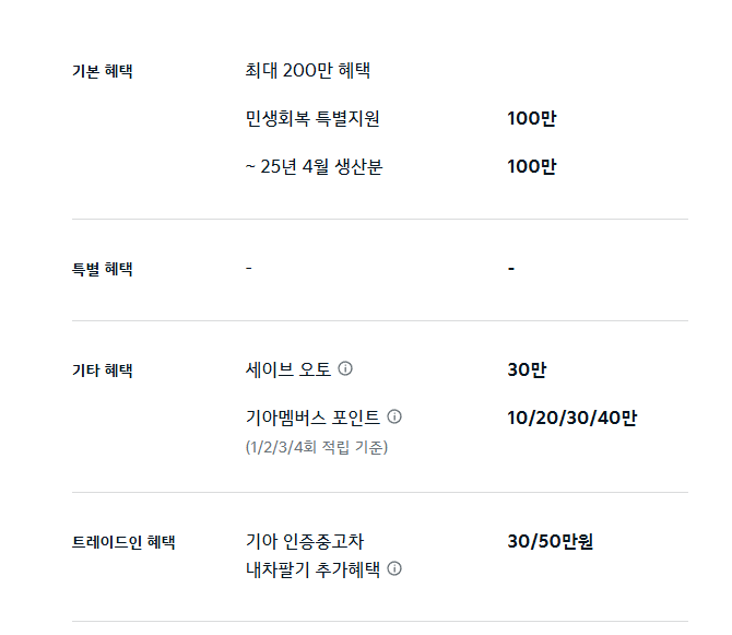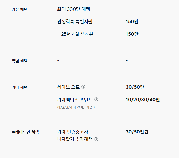 25년 8월 기아 차종별 할인 구매혜택 프로모션 판매조건