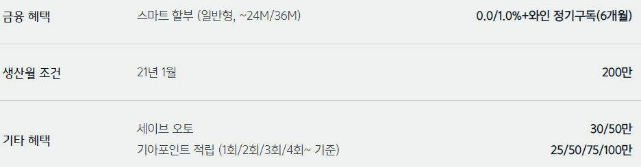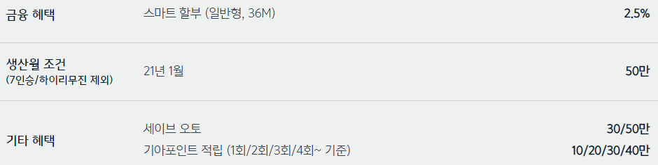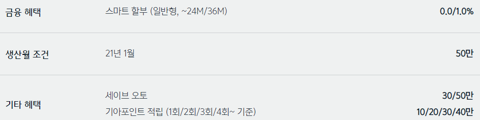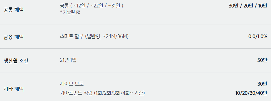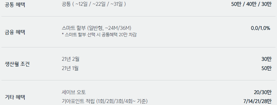 기아자동차 모델별 2021 3월 판매조건, 구매혜택, 프로모션