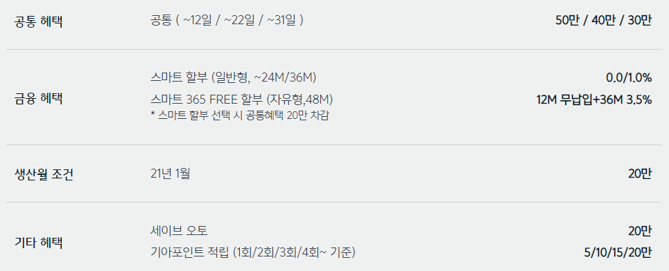 3월 기아차 판매조건, 구매 혜택 (2021)