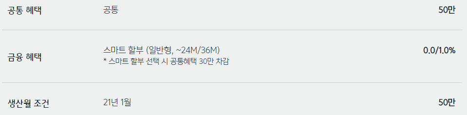 * 스마트 할부 선택 시 공통 혜택 30만 차감