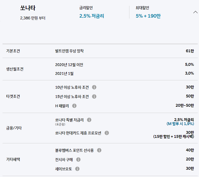 쏘나타 현대카드 제휴 프로모션 인포메이션