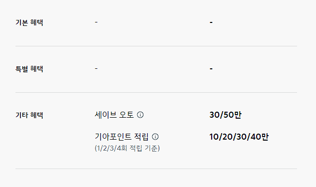기타 혜택에서 세이브 오토나 기아 포인트 적립만 제공되고 있습니다.