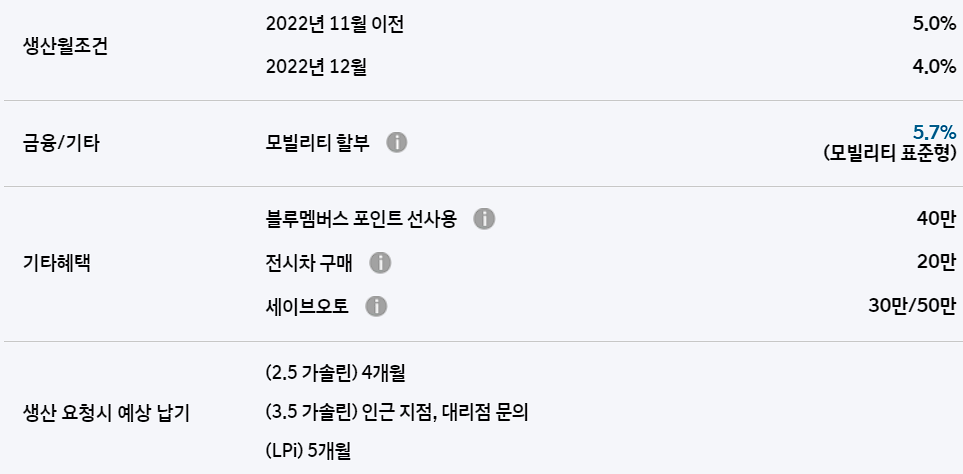 2022년 12월 이전 생산 차량은 5%의 할인 혜택이 적용됩니다.