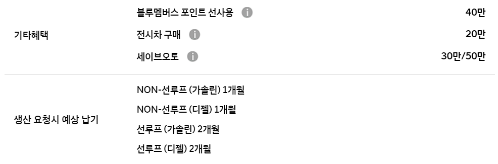 이외에도 전시차 구매, 세이브 오토할인, 블루멤버스 포인트 선사용 등의 기본 혜택도 제공됩니다.