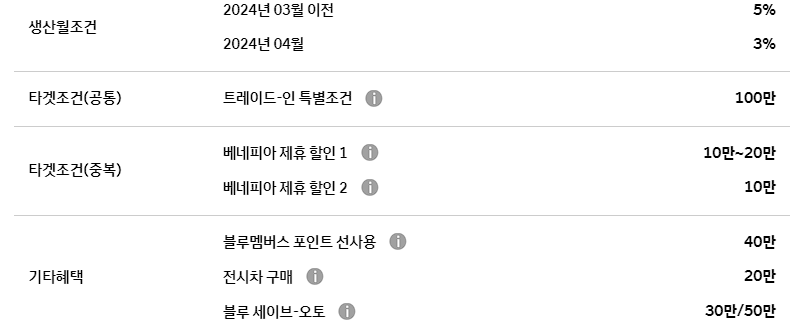 이외에도 베네피아 제휴 할인, 트레이드 인 특별조건 등의 추가 할인도 조건이 충족되면 받을 수 있습니다.
