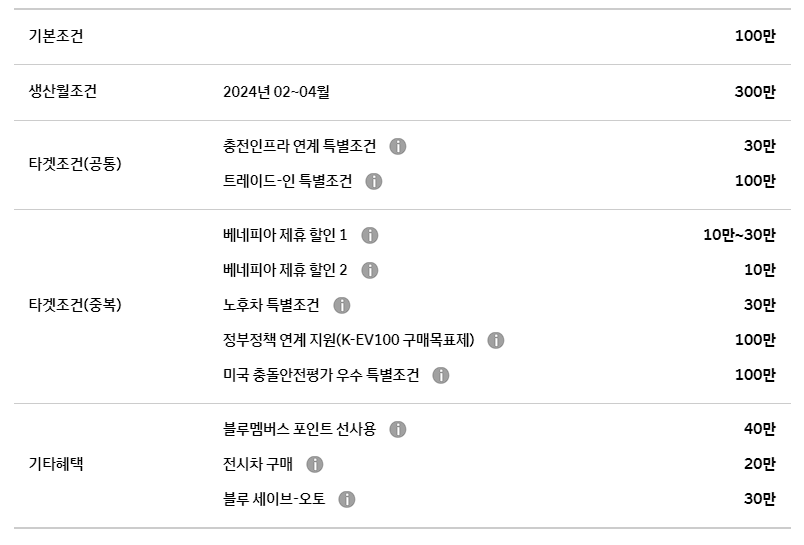 아이오닉은 이외에도 노후차 특별 조건, 정부정책 연계 혜택, 미국 충돌 안전 평가 특별 조건을 통해서도 100만 원 이상 할인 구매가 가능합니다.