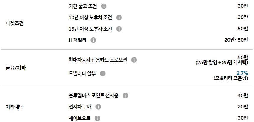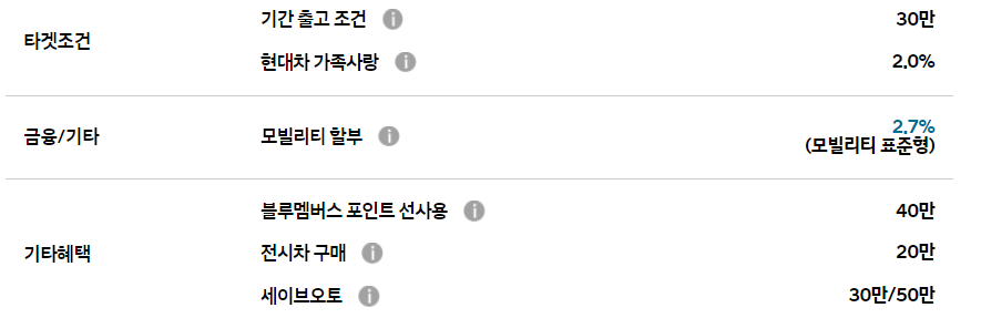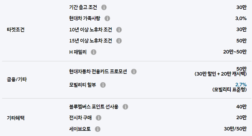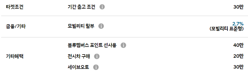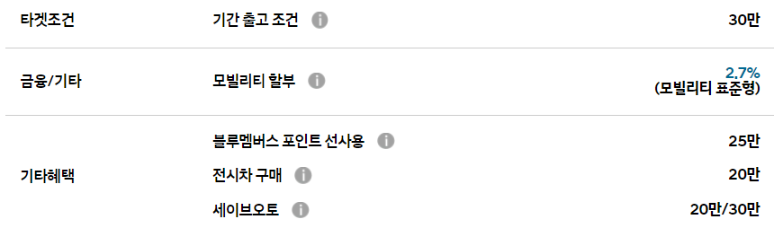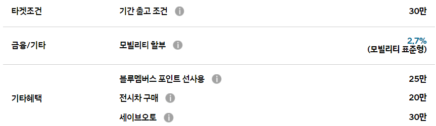 우선 앞서 각 차량별 프로모션 내용이 어떠한 것들이 있는지 공통적으로 아래에서 살펴보겠습니다.