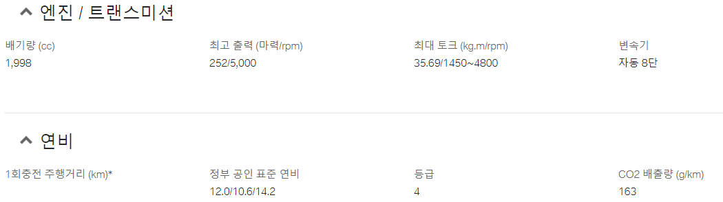 엔진은4기 통, 6기 통, 플러그인 하이브리드로 총 3가지가 있습니다.