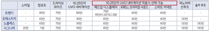 트렌디, 프레스티지, 노블레스, 시그니처로 2천만원 후반부터 3천만 원 중반으로 가격이 구성되었습니다.