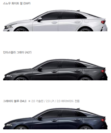 k5 외관의 경우 총 6가지 컬러를 선택 가능합니다.