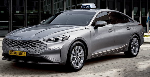 2열이 매우 넓어서 승객들을 태우기 편리한 k8 택시입니다.