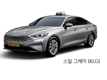 그레이색상, 화이트 색상, 블랙 색상의 외관으로 구성된 K8 택시입니다.