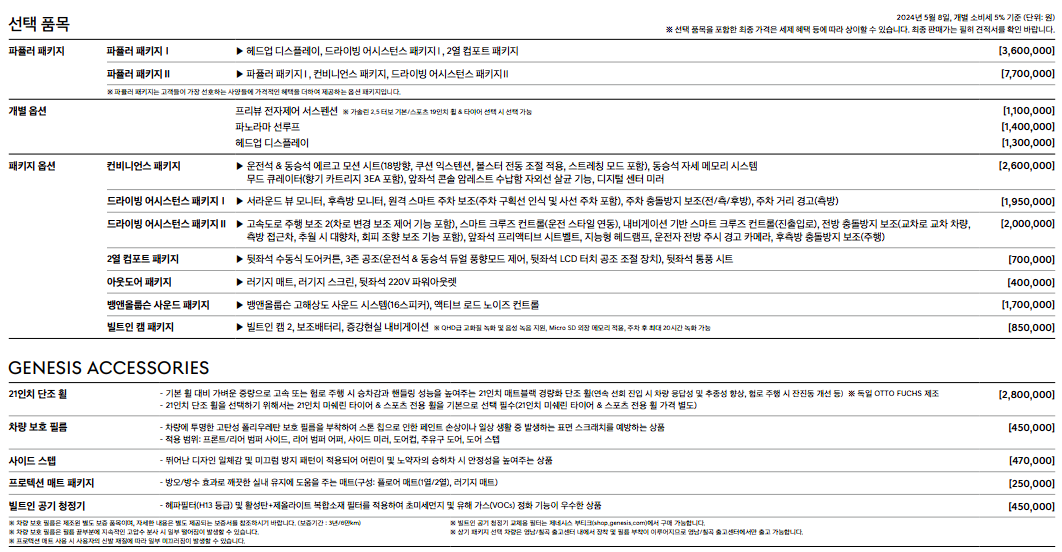 gv70 페이스리프트 옵션 가격을 살펴보도록 하겠습니다. gv70 awd 4륜 구동을 선택하면 300만원의 추가 옵션비용이 발생합니다.