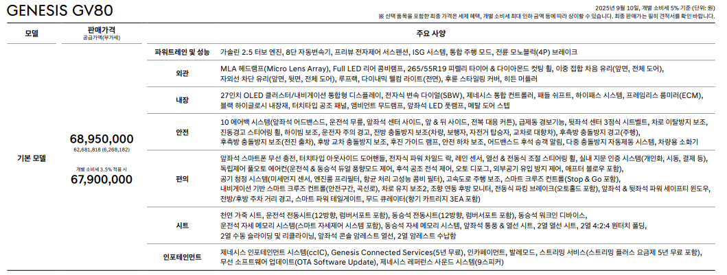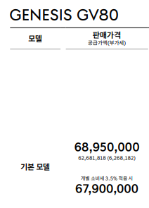 gv80 기본 모델 가격은 6,895만 원입니다.