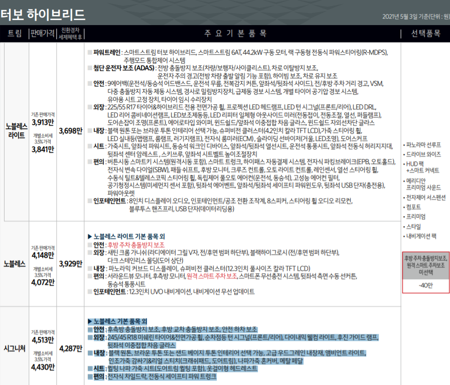 2020.12.04 - [차타고/자동차 가격] - [현대] 2021 그랜저 하이브리드 옵션, 가격, 가격표 정리