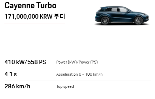 또한, 포르쉐 카이엔 터보, gt, 카이엔 쿠페 차량을 구매하고자 할 경우는 더욱 차량 구매 비용이 증가합니다.