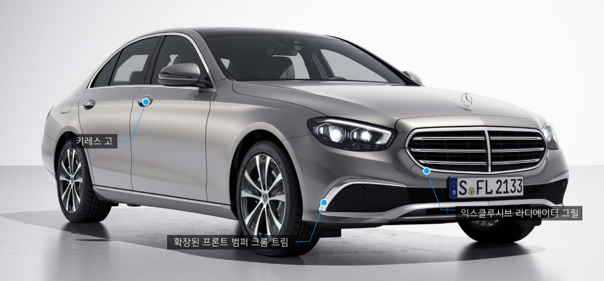 벤츠 e클래스 익스클루시브 디자인은 중후한 모습이 특징입니다.