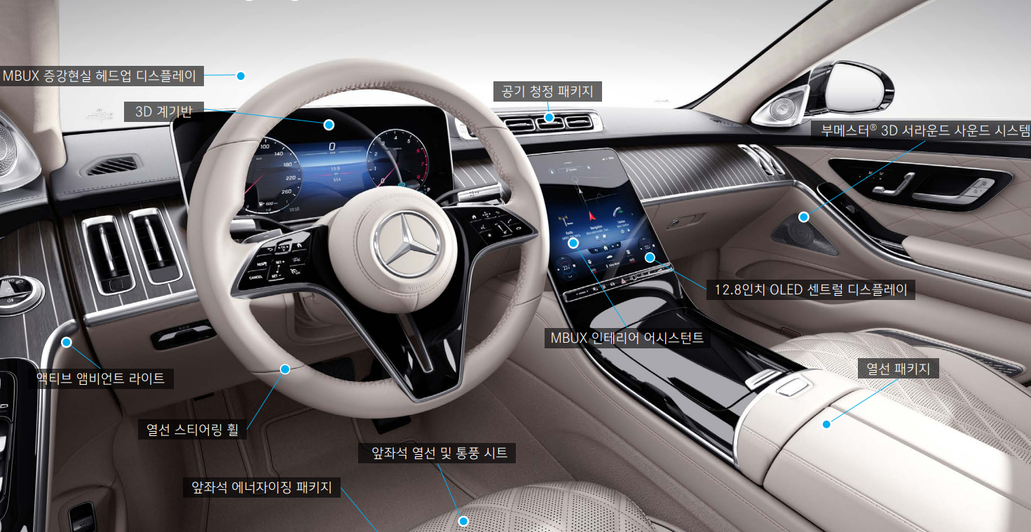 s클래스 실내 공간은 비행기 일등석 못지않은 느낌을 전달합니다.
